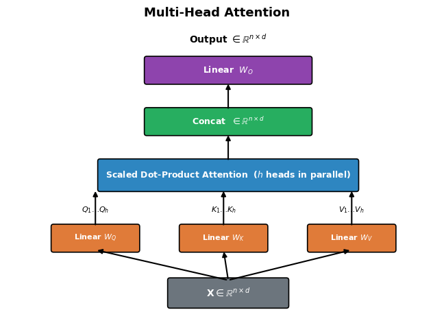 (y_mha + 0.35, "Step 1: $\\mathbf{Z}_1 = \\mathrm{MultiHead}(\\mathbf{X})$"),