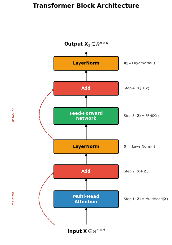 ax.set_title("Transformer Block Architecture", fontsize=14, fontweight="bold", pad=12)