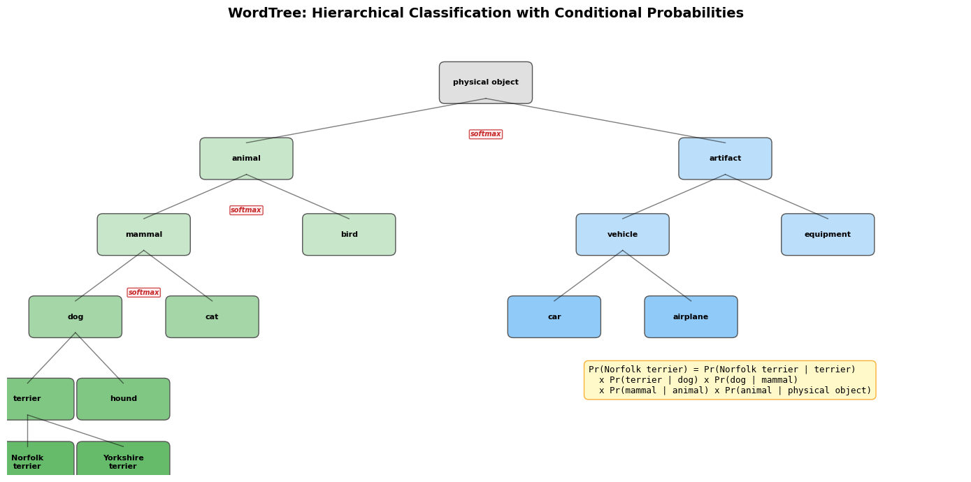 ax.set_title('WordTree: Hierarchical Classification with Conditional Probabilities',