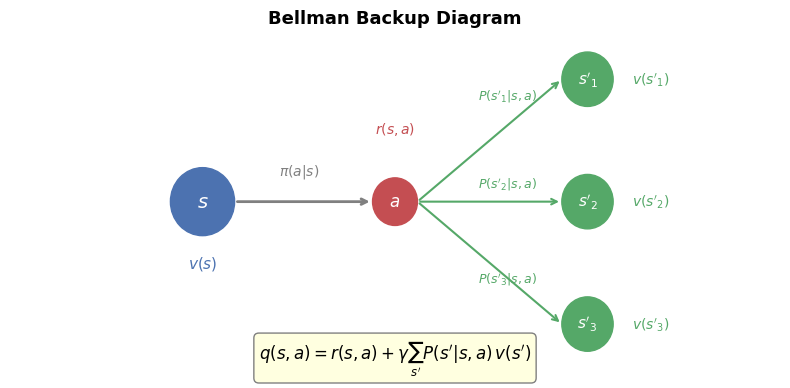 ax.set_title('Bellman Backup Diagram', fontsize=13, fontweight='bold')